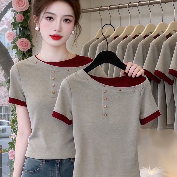 [1] 撞色假兩件斜肩上衣【新款上市】1入組 NT$1098