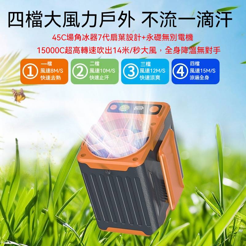 [1]「渦輪風力調節・強勁風量持續輸出」1入組-NT$1198(可掛腰 掛脖 手機充電 照明)